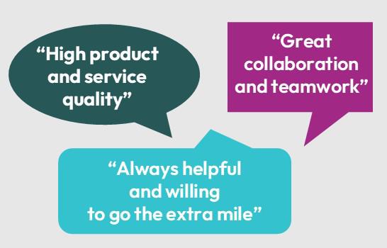 More respondents shared comments than ever before, reflecting strong engagement and clear appreciation of key strengths.Customer comments highlighted strong collaboration, responsive support, and high product quality, along with valuable insights for future development.